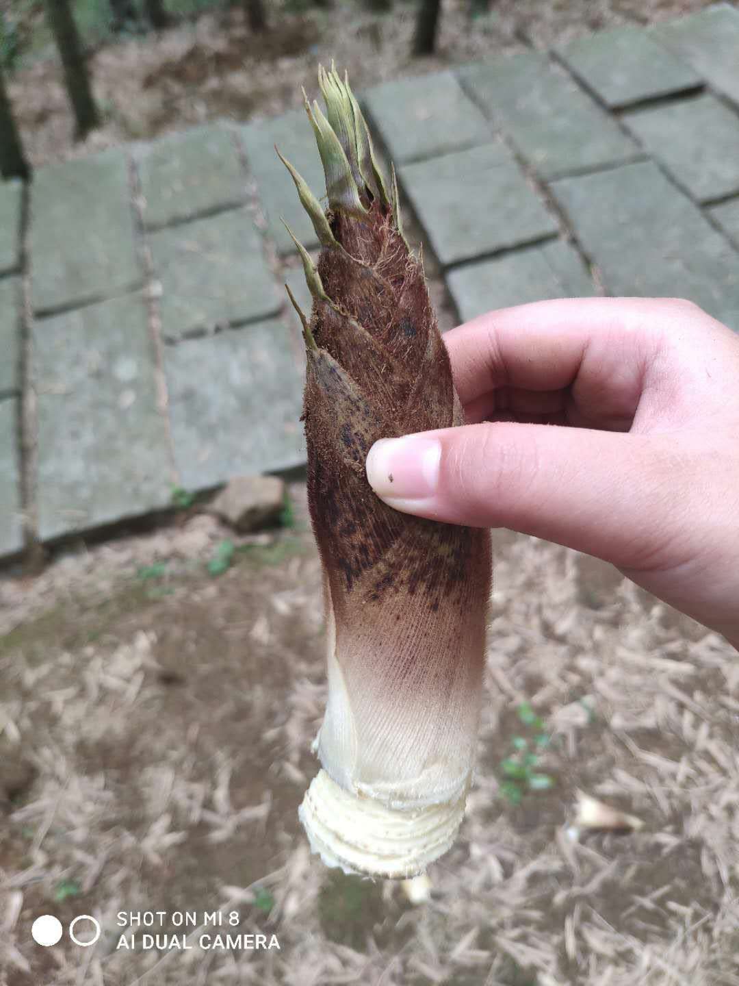 儿子很好奇 挖出一颗竹笋