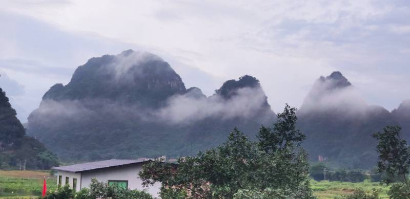 在途中,我们找到了一家客栈正坐落于一个秀丽的小山峰下。更让人吃惊的是淡季房费只要150元一晚,而且还有麻将机。超级划算。